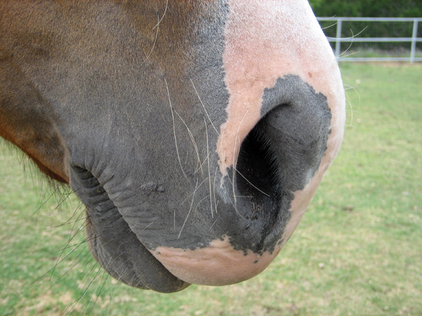 Muitas vezes questionei porque cortam os bigodes dos cavalos. Acredito que fazem isso para deixar o animal mais bonito. Porém esquecem que a natureza fez os cavalos bigodudos e barbudos por alguma razão. Eles não conseguem enxergar o que está abaixo do focinho, pois os olhos dos equinos são laterais, por isso eles tem um ponto cego na sua frente e abaixo da cabeça.