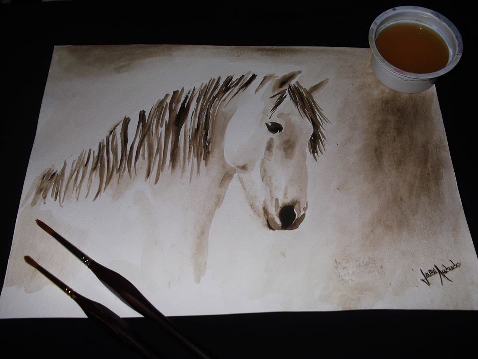 A artista Laura Andrade se dedica a pintar cavalos. São aquarelas e óleo sobre tela.