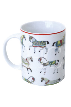 Caneca de porcelana estampada com cavalinhos.